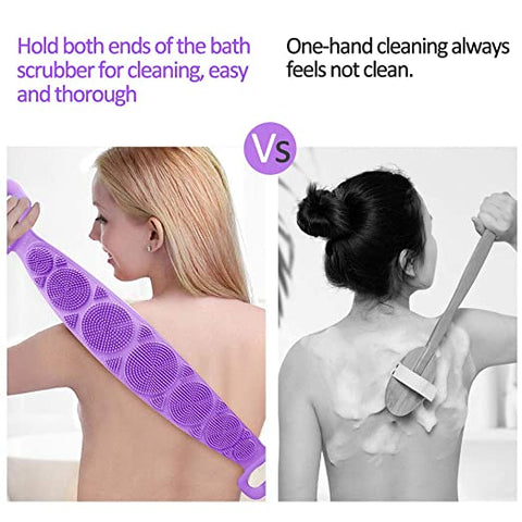 Simple shower accessories for personalized body scrubbing. There is a silicone sponge on one side to massage the back to exfoliate without hurting the skin; the other side is an oval structure, which can massage every inch of your skin and promote blood circulation.